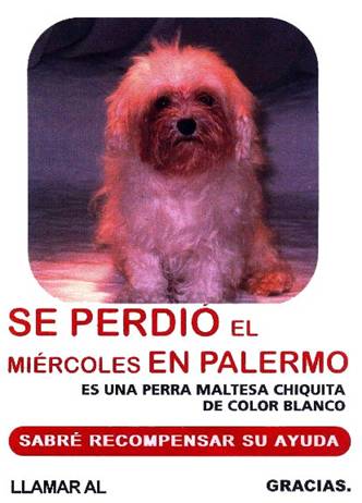В доме Наталии Орейро был ремонт, там побывало много народу и видимо кто из них забыл закрыть дверь и любимая псинка Наталии по клички Мабель семи лет убежала. В среду 29 вечером Наталия поняла что её нет и ей стало очень плохо! Валерия Лорка, её подруга послала мне и Еси имэйл в котором рассказала о случившемся, и что Наталии очень плохо и что мы нужны ей. На следующие утро в четверг мы пришли к Наталии и она правда была в ужасном состоянии, ей кто-то позвонил и сказал что собачку взяла рыжеволосая женщина, с голубыми глазами, лет 50 у которой уже было две белые собачки. Весь день Наталией и Рикардо и я с Еси расклеивали фотографии Мабель по району Палермо и спрашивали в каждом доме не видели ли они Мабель или ту женщину, ни кто ни чего не знал…