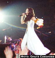 В предыдущий приезд Наталии Орейро в Москву ее выступления проходили в Кремлевском дворце, который не располагает к активным проявлениям зрительской реакции, поэтому в минувшую пятницу концерт состоялся в ДС "Лужники". Выигрыш от такого решения очевиден: во-первых, большее число зрителей на трибунах оказалось ближе к сцене, которая на этот раз представляла собой круглый подиум посередине зала, во-вторых, цена билетов была более демократичной. В силу последнего обстоятельства ощутимое большинство зрительской массы составляли девочки в возрасте от семи до пятнадцати лет. Первое впечатление, когда попадаешь в зал: детский новогодний утренник, только вместо крика "Сне-гу-ро-чка!" экзальтированные дети во всю глотку вопят: "На-та-ша!!!".