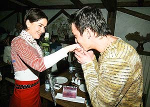Кажется, довольно скоро переводчик Стас тоже понял, что его услуги сегодня вечером совершенно излишни. Сделав вид, что ему что-то срочно нужно сделать, он оставил Наталию и Костю одних. А вскоре и мы с фотокором почувствовали себя не в своей тарелке. И тоже тихонько удалились... Когда на следующий день мы позвонили Косте узнать, каковы его впечатления об ужине, он лишь скупо отшутился: - Ну поесть-то в тот вечер мне так и не удалось. Но я, признаться, об этом ничуть не жалею. Спасибо вам за эту встречу.
